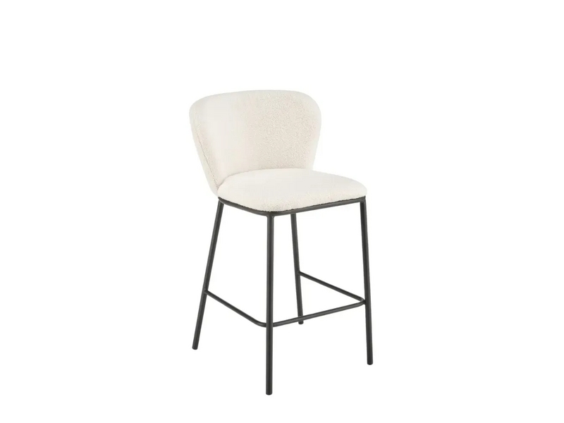 Scaunul pentru bar H119 cu tapițerie moale crem are capacitatea de a îmbrățișa plăcut corpul, creând o senzație de confort și comoditate. Designul său înalt înalță corpul și oferă o postură primitoare, ideală pentru relaxare la bar sau în bucătărie. Combinația dintre designul modern și materialele de înaltă calitate, cum ar fi metalul acoperit cu pulbere și țesătura buclată moale, face ca acest scaun să fie nu doar funcțional, ci și atrăgător din punct de vedere vizual. Fabricat cu o calitate înaltă, asigură durabilitate și întreținere ușoară.