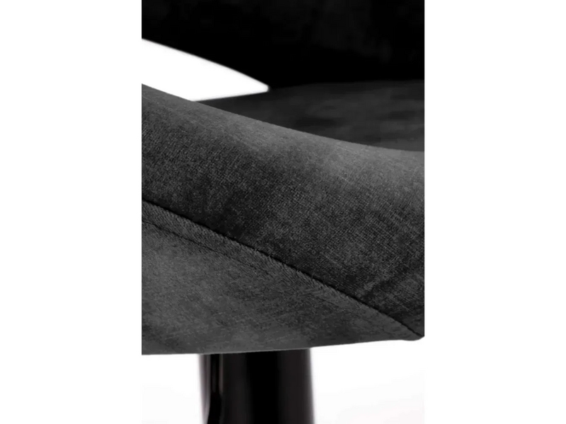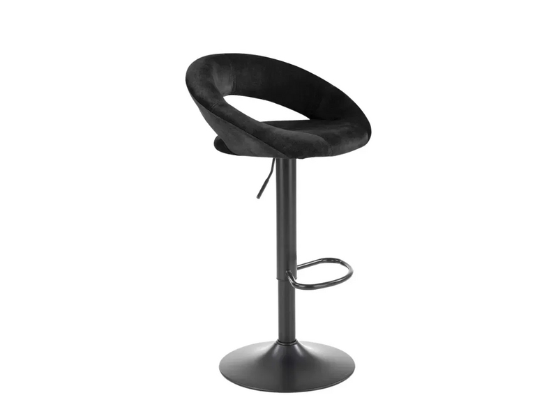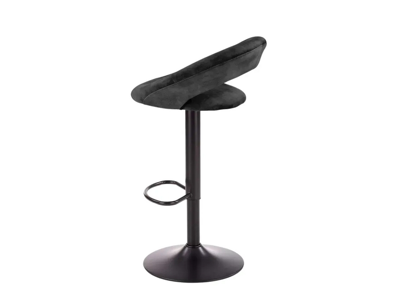 Scaunul de bar H102 este dotat cu picior reglabil din metal vopsit în culoare neagră. Tapițeria scaunului și a spătarului este din catifea.