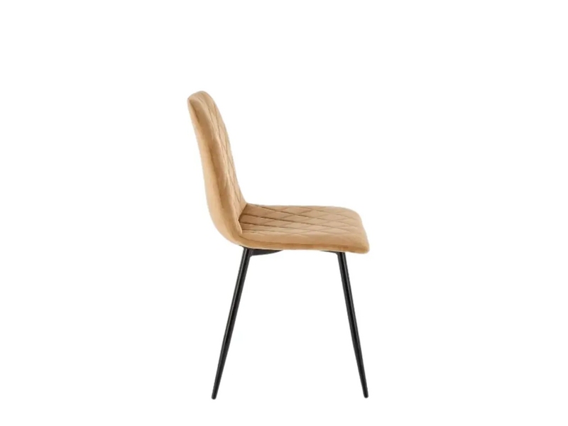 Scaunul confortabil este tapițat cu velur, ceea ce nu numai că îi conferă un aspect luxos, dar asigură și moliciune și confort la șezut. Cusăturile frumoase în formă de romburi, care decorează scaunul și spătarul, precum și părțile laterale ușor rotunjite, conferă scaunului un aspect și un stil unic.