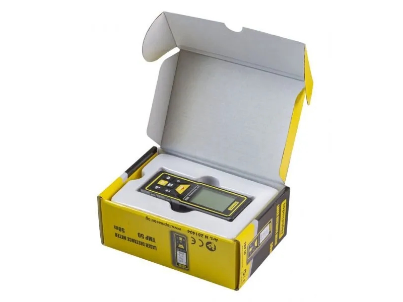 Dispozitiv de masurare cu laser cu un domeniu maxim de masurare de 50m.