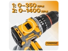 Первая передача (0-350 об/мин) предназначена для завинчивания с высоким контролем крутящего момента, а вторая передача (0-1400 об/мин) обеспечивает эффективное сверление в различных материалах.