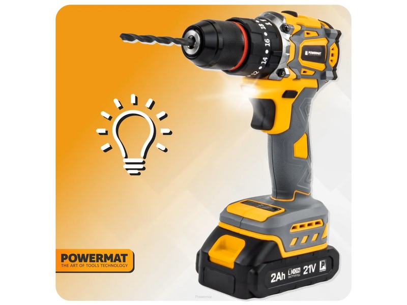 Аккумуляторная ударная дрель-шуруповерт PM-WA-21V-2M 2x21Вx2Ah, светодиодная подсветка POWERTMAT