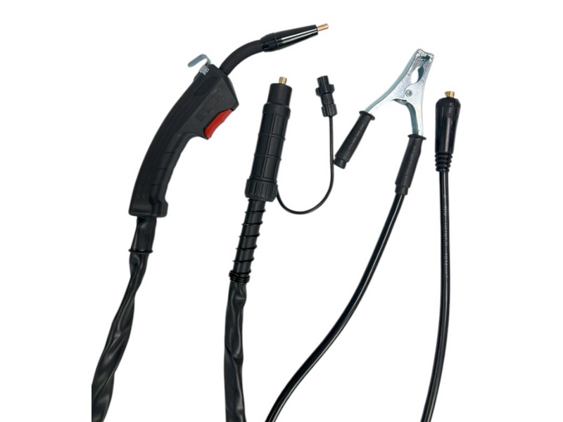 В упаковке: Пистолет для сварки флюсовой проволокой 1.5 м; Кабель заземления с зажимом 1,2 м: Кабель питания: 1,2 м