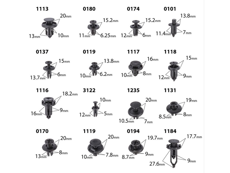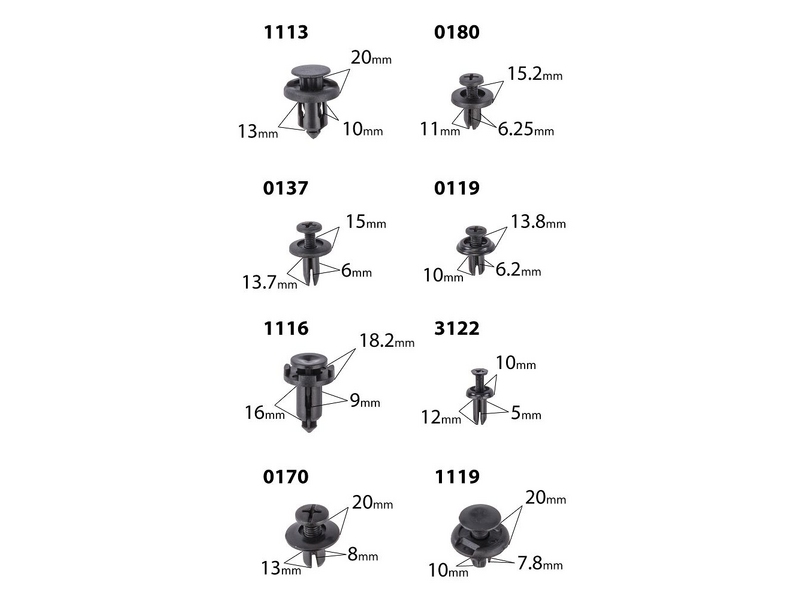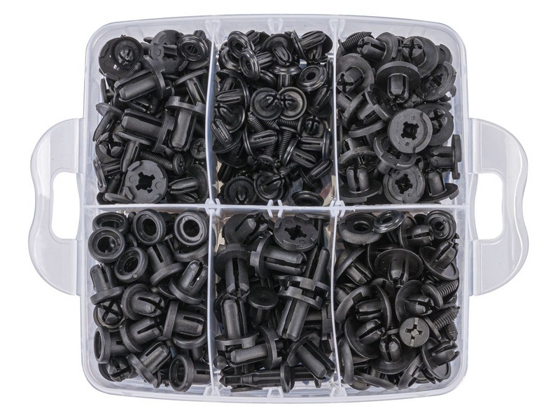 С этим набором вы забудете о досадных проблемах с креплением элементов обивки, бамперов, крыльев и других пластиковых деталей вашего автомобиля!
