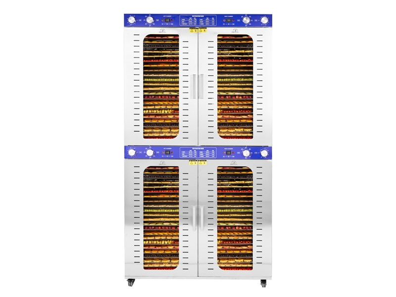 Описание: Универсальный дегидратор Demetra SS-96 — незаменимое устройство для тех, кто хочет эффективно и полезно хранить продукты. Этот высокопроизводительный дегидратор, предназначенный для использования как в коммерческих, так и в бытовых условиях, может обрабатывать до 96 кг пищевых продуктов, что делает его идеальным для сушки фруктов, овощей, трав и многих других продуктов. Благодаря впечатляющей мощности 7600 Вт и диапазону температур от 40 до 90 °C он позволяет точно контролировать процесс обезвоживания. Модель SS-96, изготовленная из высококачественной нержавеющей стали, обеспечивает не только превосходную долговечность, но и оптимальную гигиену в процессе сушки продуктов. Преимущества: Одним из основных преимуществ дегидратора Demetra SS-96 является большое количество уровней, что позволяет обрабатывать большое количество пищевых продуктов одновременно. Он состоит из 96 лотков, 4 из которых независимы друг от друга, что позволяет осуществлять разнообразную сушку на каждом уровне.