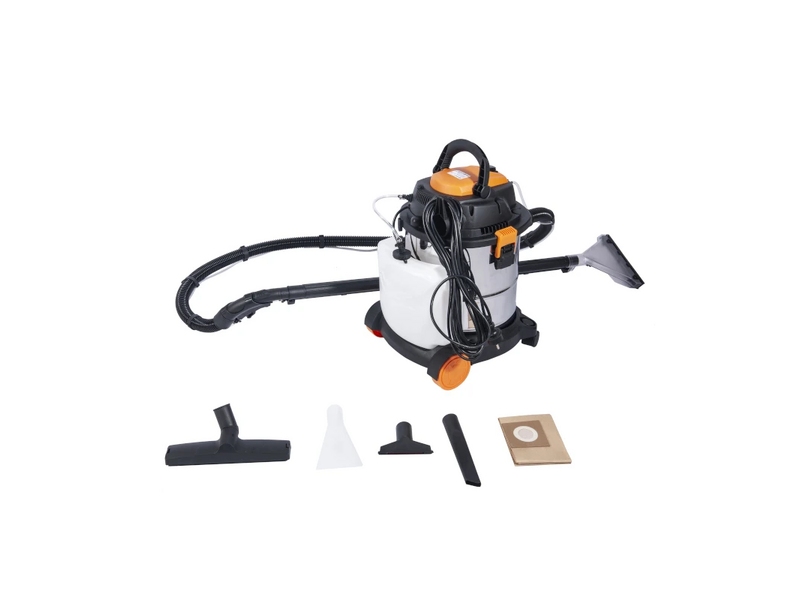 Цвет лица: 1x пластиковый шланг 32 мм × 2 м; 2x пластиковая трубка 32 мм × 45 см; моющийся губчатый фильтр + моющийся складчатый фильтр + бумажный мешок для пыли, по 1 шт.; 1x насадка для распыления воды 32 мм; 1x щетка для мытья 32 мм; 1x узкая насадка для углов 32 мм × 20 см; 1x щетка для пола влажная/сухая 32 мм; 1x насадка для дивана 32 мм