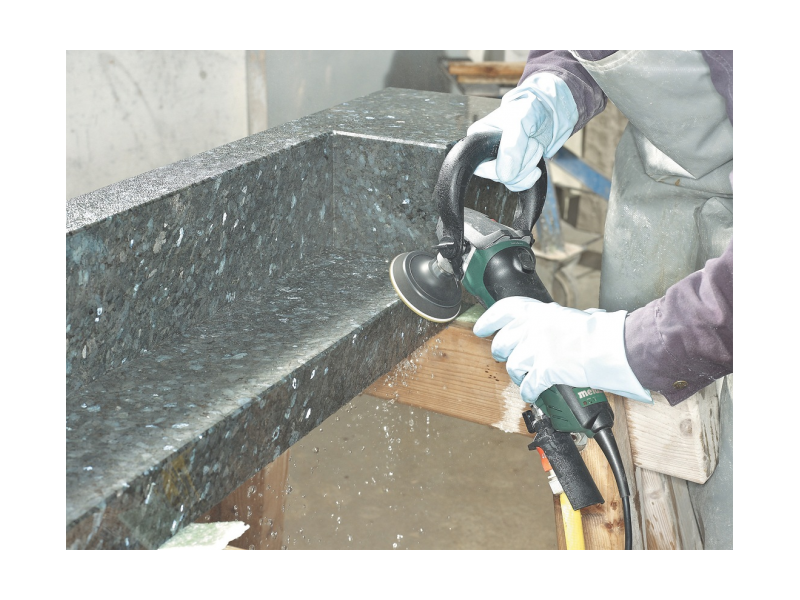 Полировальная машина PWE11-100 - Полировальная машина для влажной обработки гранита, мрамора и ценных сортов камня. Двигатель Metabo Marathon с запатентованной защитой от пыли для обеспечения длительного срока службы. Полноволновая электроника с регулировочным колесом: для работы с числом оборотов в зависимости от материала, остающимся неизменным под нагрузкой. Регулируемая подача воды извне для точного дозирования. Колпак на корпусе для защиты от брызг. Регулируемая рукоятка-скоба для безопасного и равномерного ведения при полировании. В сетевом кабеле интегрирован защитный выключатель PRCD.