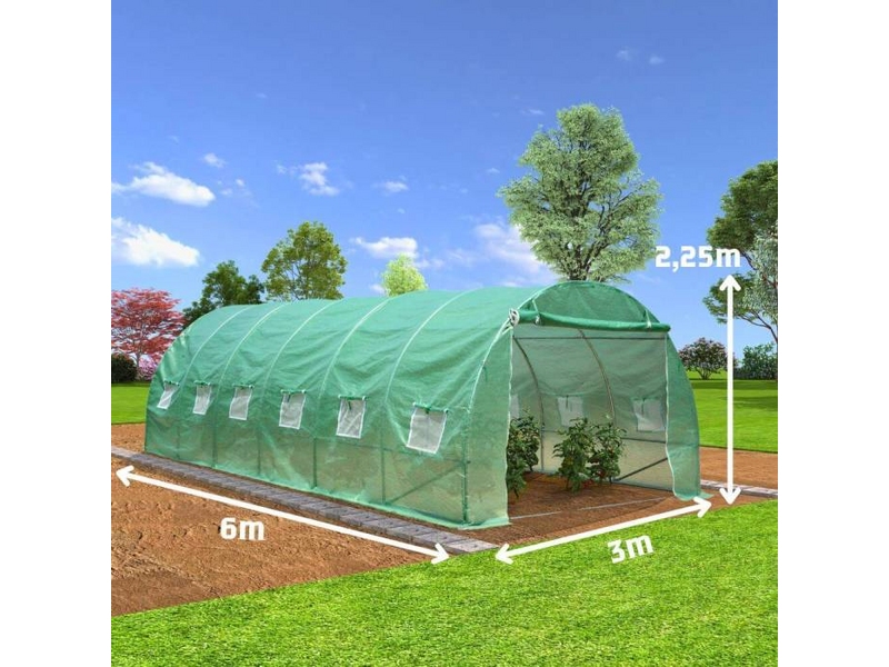 Теплица 6x3x2.25м, армированная пленка 200 г / м², оцинкованные трубы 26х0,9 мм. Этота теплица идеально подходит для посадки веснаых, летних, осенних и зимых культур. На 18 м² достаточно места для посева, посадки и выращивания овощей и растений. Растения будут надежно защищены от ветра, дождя, града, снега, сильного солнечного света и повреждений, наносимых и птиц. Специальная пленка помогает оптимально выращивать растения.