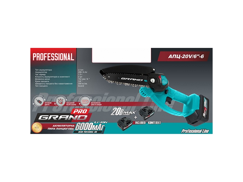 Цепная пила аккумуляторная Grand АПЦ-20V/6"-6