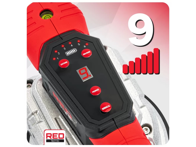 Встроенная кнопка регулировки позволяет регулировать интенсивность вибрации по 9 уровням в зависимости от размера и типа материала, обеспечивая точное и равномерное размещение плитки.